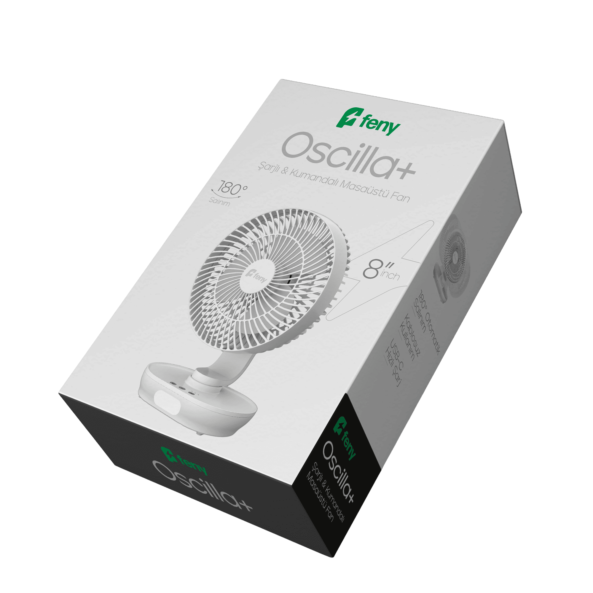 3 Kademeli LED Gece Lambalı 180° 8″ Şarjlı Kumandalı Premium Masaüstü Fan